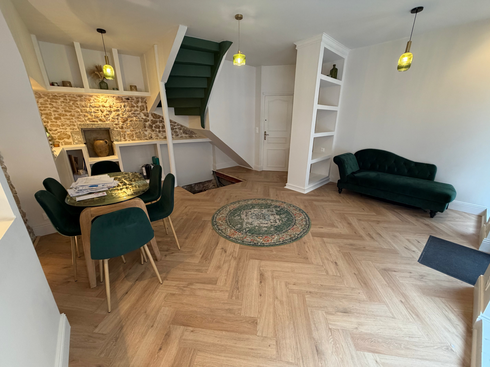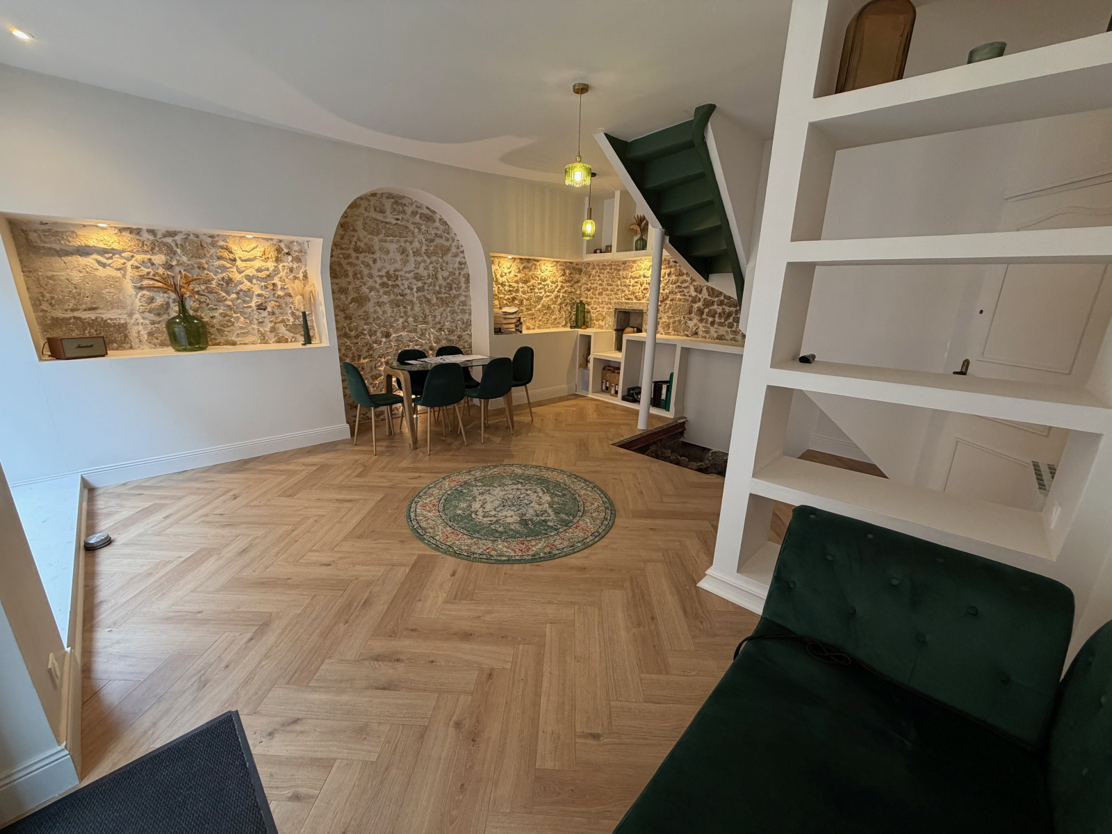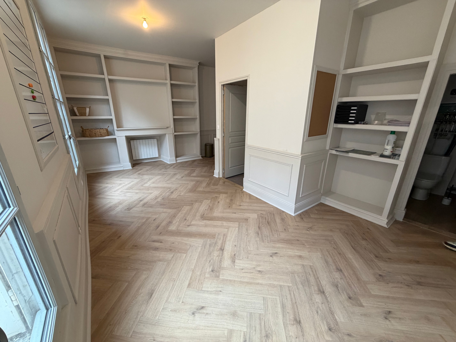 Au 1er étage, un très bel espace rénové avec goût, actuellement aménagé en bureau, peut être transformé en un agréable appartement T2. Lumineux et bien agencé, il se compose d’une pièce de vie avec cuisine aménagée et équipée, d’une salle d’eau moderne avec WC et lave-mains, ainsi que d’une grande chambre avec coin dressing et espace bureau.